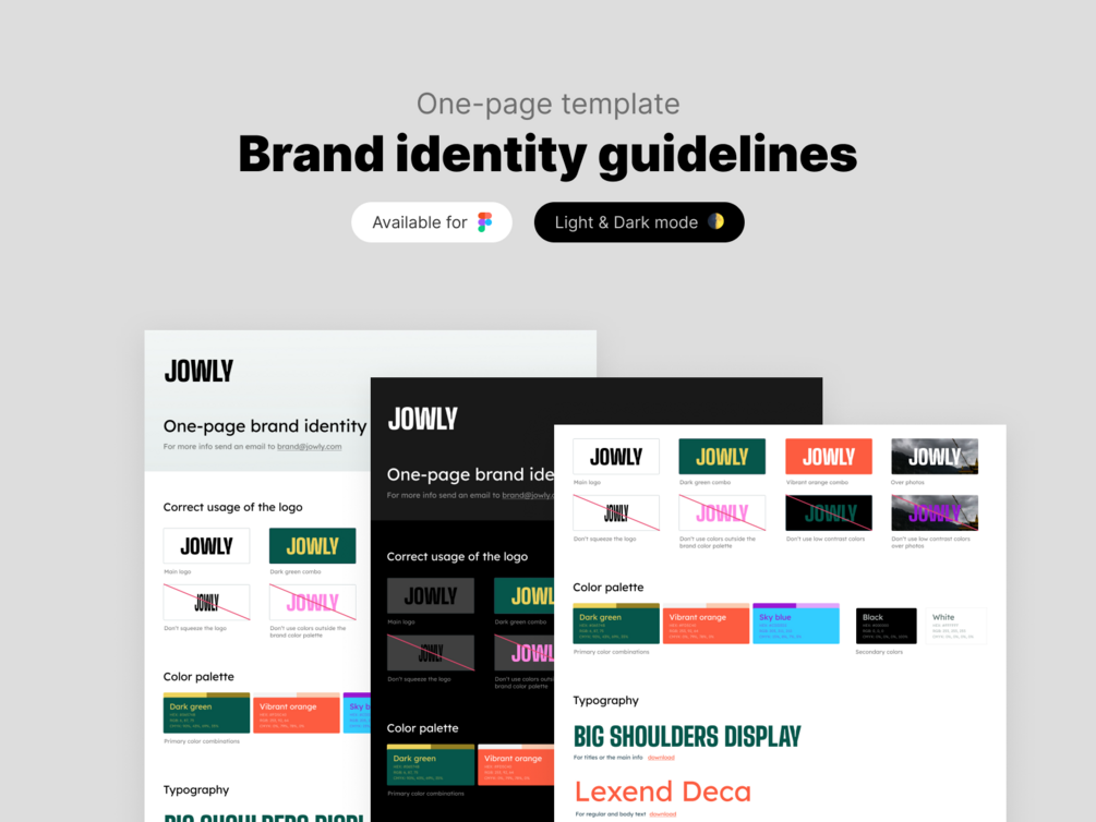 Use this template to create one-page brand identity guidelines, for quick and small branding projects